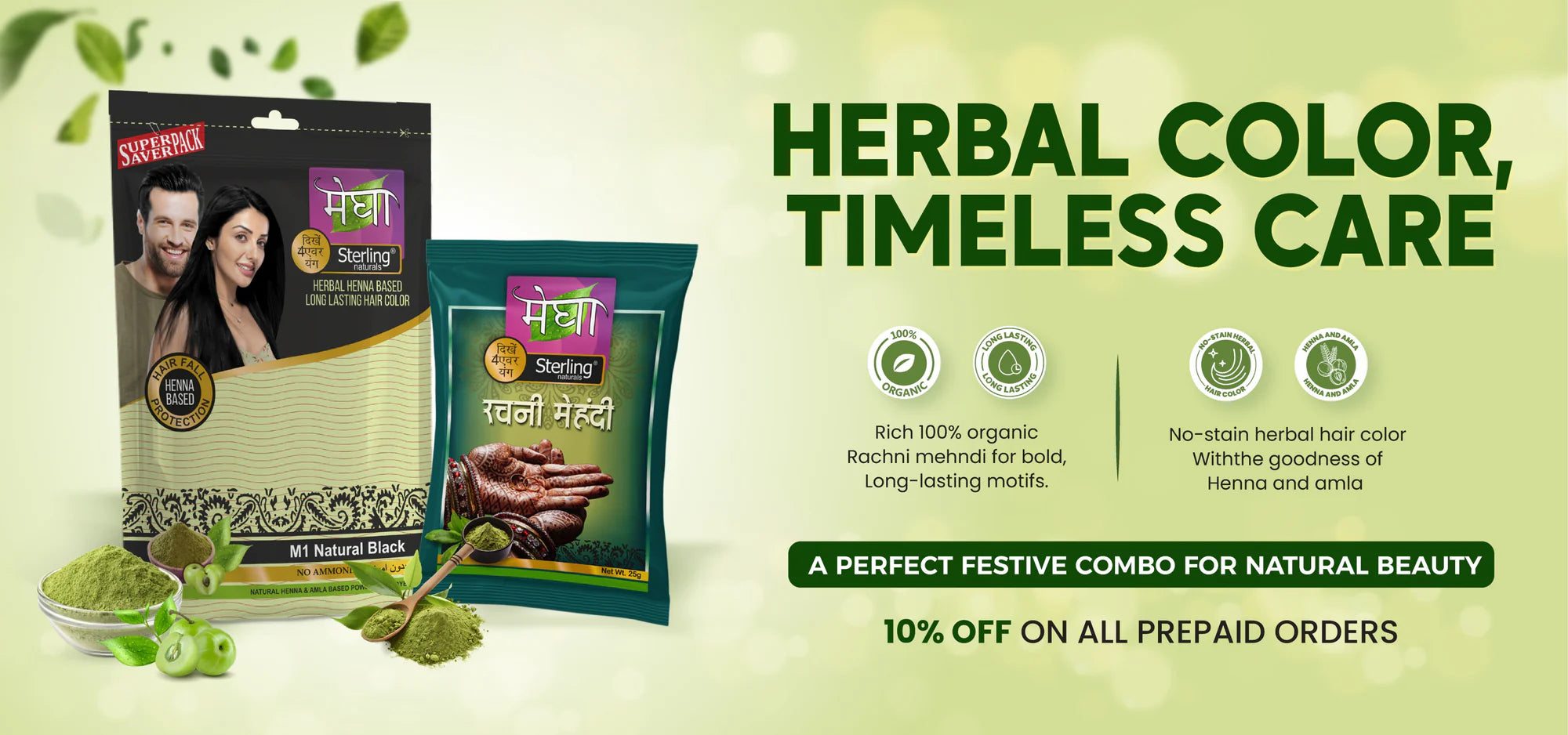 Megha Henna-Based Hair Color (Natural Black) - 5 x 45g + Rachni Herbal Henna Powder – 5 x 25g | Nourishing Combo for Long-Lasting Natural Color & Healthy Hair