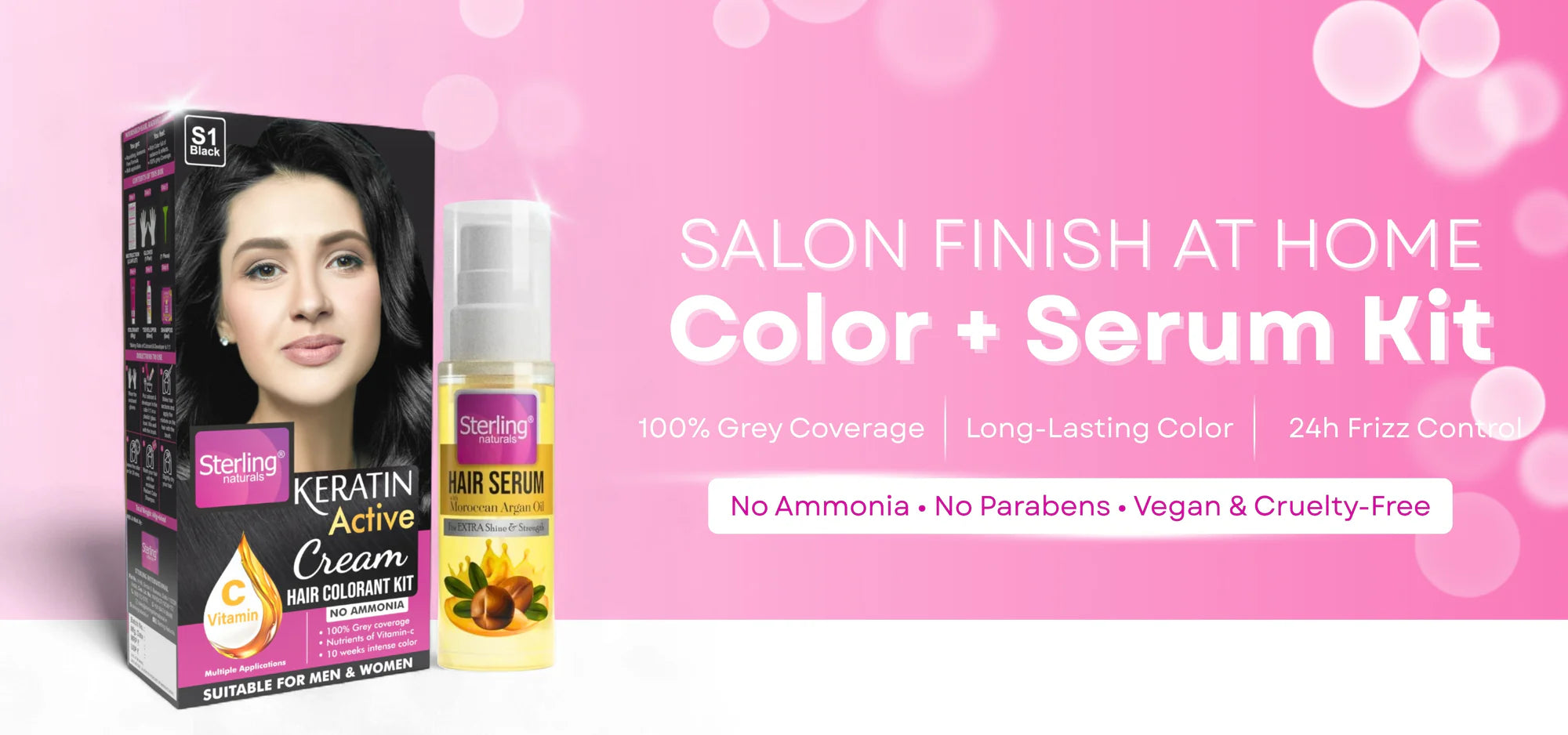 Sterling Naturals Hair Color Shampoo + Moroccan Argan Oil Hair Serum (30 ml) – Instant Grey Coverage + 10× Frizz Control & 24‑Hour Shine