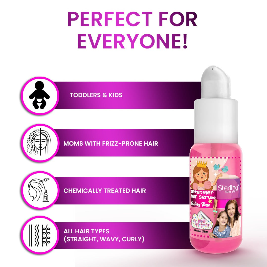 Smooth, shiny hair - no tears, no tangles! Sterling Naturals Detangler Hair Serum is a non-greasy, dermatologically tested solution specially formulated for kids’ delicate hair. Enriched with botanical extracts and Vitamin E, it makes combing easier and leaves hair soft, frizz-free, and beautifully manageable.
